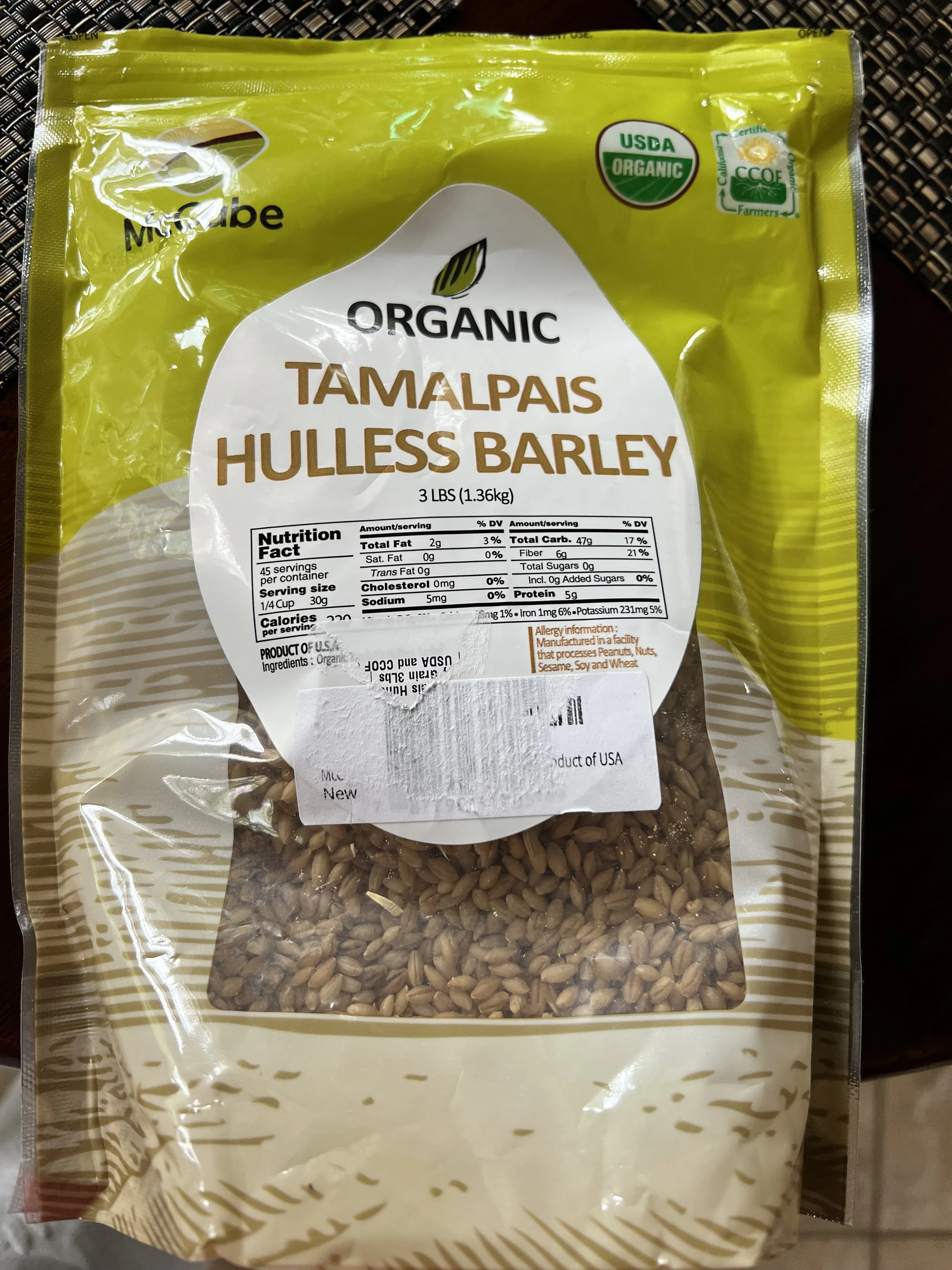 1 cup pearl barley, rinsed and drained