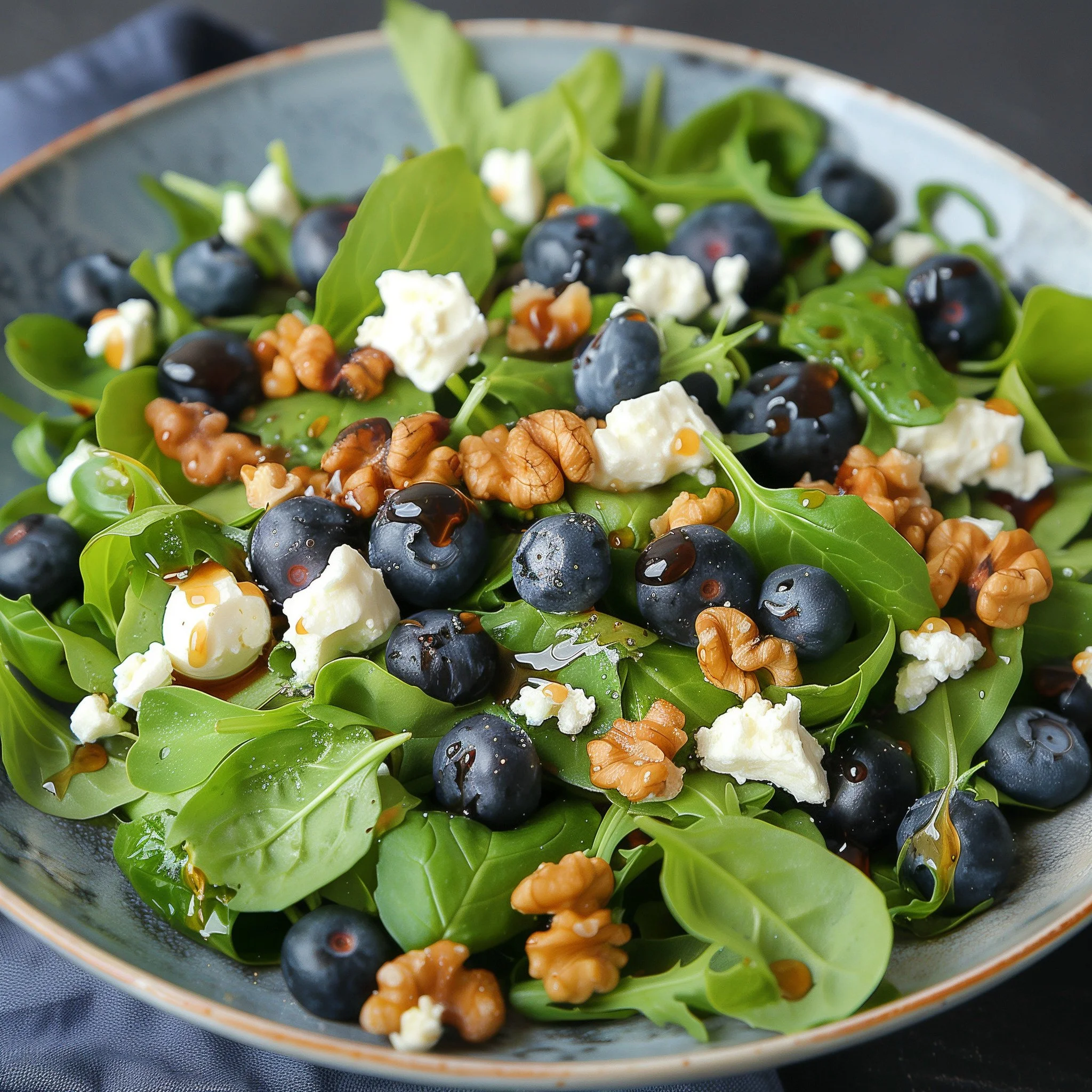 This blueberry salad offers a refreshing mix of vibrant flavors and textures. Fresh, juicy blueberries are combined with crisp greens and a medley of ingredients like crunchy nuts, creamy cheese, and a light vinaigrette to create a balanced and nourishing dish. It’s the perfect blend of sweet, savory, and tangy, making it a delightful option for a light lunch or a colorful side at your next gathering. Simple, healthy, and full of natural goodness!